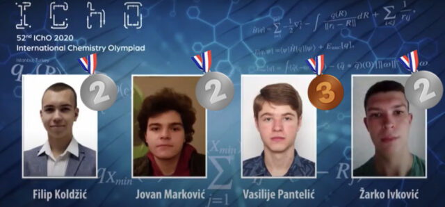 Žarko Ivković, učenik Gimnazije “Svetozar Marković“ iz Niša, Filip Koldžić, učenik Matematičke gimnazije iz Beograda i Jovan Marković, učenik Gimnazije iz Kruševca osvojili su srebrne medalje, na Međunarodnoj hemijskoj olimpijadi učenika srednjih škola, dok je Vasilije Pantelić, učenik XIV beogradske gimnazije osvojio bronzanu medalju.