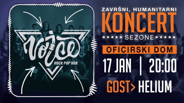 „Voice muzičke radionice“ organizuju završni koncert sezone rok pop hora „Voice“ u Oficirskirskom Domu (Orlovića Pavla 28a, Niš) 17. januara od 20 sati. Koncert će biti humanitarnog karaktera. Ulaz je slobodan, no svaka donacija je dobrodošla.