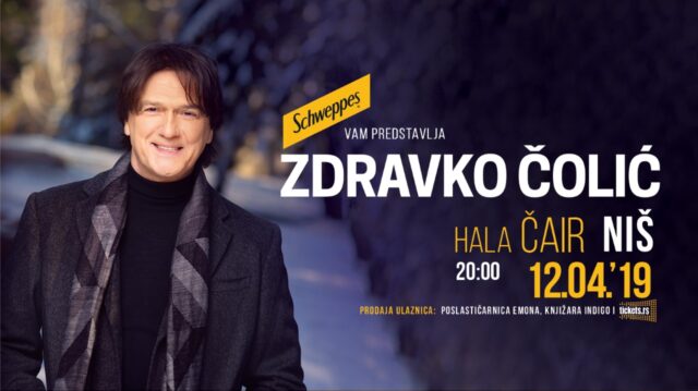 Jedna od najvećih muzičkih zvezda Balkana Zdravko Čolić nastupiće pred niškom publikom, u petak, 12. aprila 2019. godine, u hali Čair. Koncert je zakazan za 20.00 časova. Ulaznice za koncert biće su u prodaji – knjižari Indigo i poslastičarnici Emona, a cena ulaznice 1000,00 dinara.